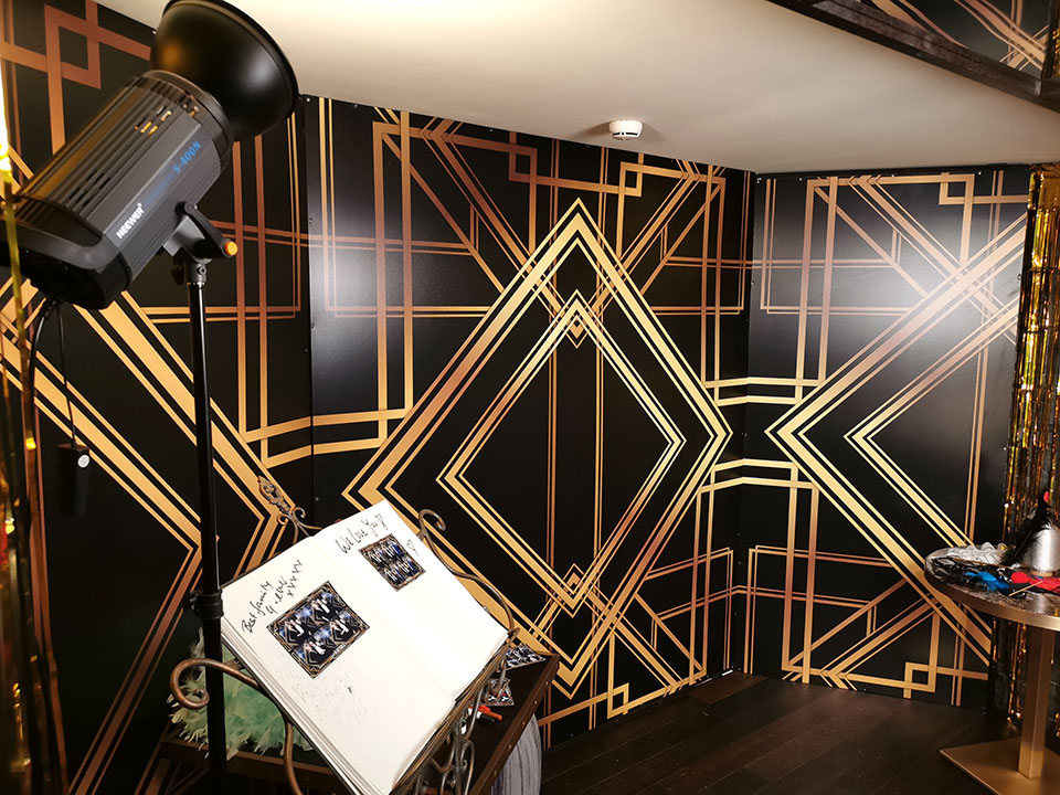 Gli ospiti hanno a disposizione una serie di divertenti accessori come cappelli, maschere, occhiali, baffi, cartelli, parrucche, collane e molti altri elementi che vengono indossati durante ciascun set fotografico.