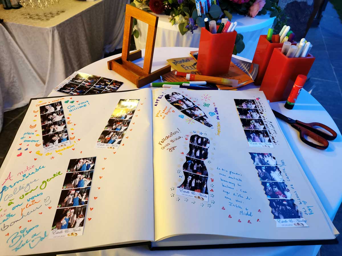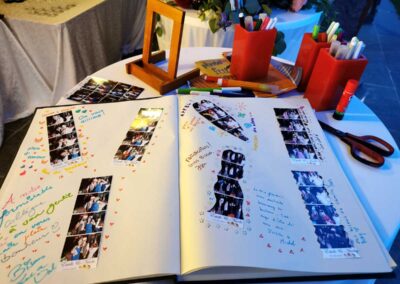Una copia della foto può essere inserita in un guestbook. Un beamer opzionale proietta a rotazione, in tempo reale, i singoli scatti effettuati.