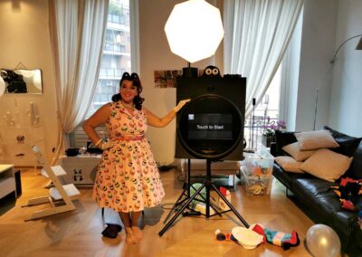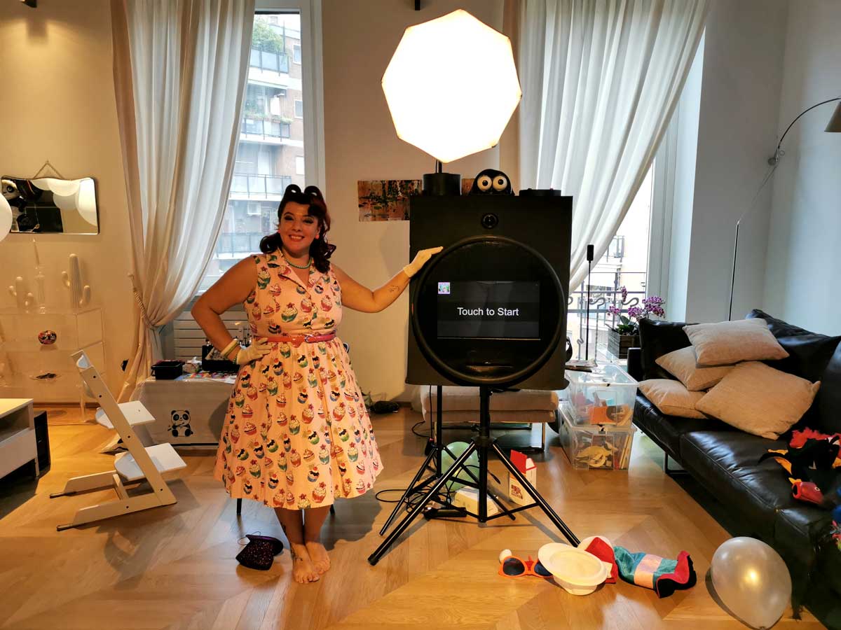 Photo Booth è un apparecchio che viene collocato in un punto specifico riservato (ad esempio 2 metri di larghezza per 2 metri di lunghezza) all’interno degli spazi dell’evento.